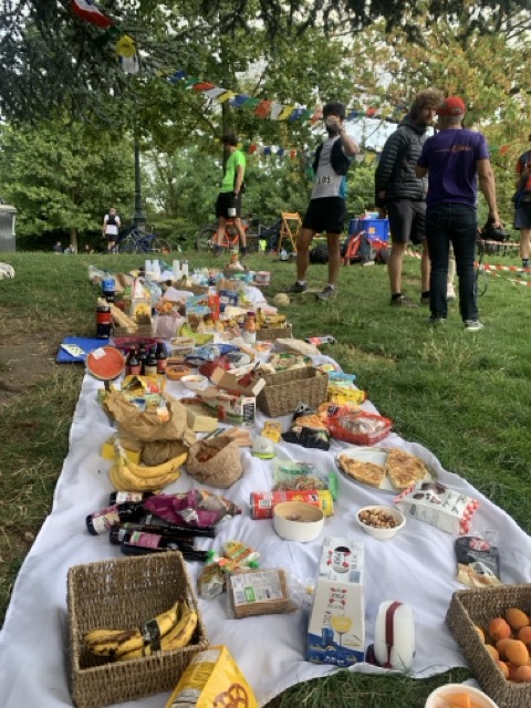 Le ravitaillement est participatif. Chacun·e contribue en apportant ce qu’il ou elle peut offrir de meilleur, ce qui fait envie, ce qui a du goût. Du fait maison, du bio, du simple, du bon, du cœur. On cuisine, on coupe, on prépare, on partage. Le ravito devient une table commune, vivante, généreuse.